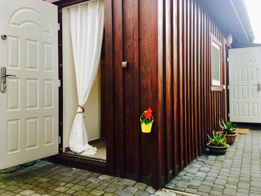 Domek w stylu alpejskim, na wyłączność, ma 16 m² i obejmuje sypialnię, część dzienną z rozkładaną sofą oraz łazienkę z prysznicem. Do dyspozycji jest sauna w obiekcie, telewizor z płaskim ekranem, bezpłatne Wi-Fi oraz zestaw do parzenia kawy i herbaty. Na zewnątrz znajduje się patio z widokiem na wewnętrzny dziedziniec i miejscem do wypoczynku. Prosty, funkcjonalny układ sprzyja wygodnemu pobytowi.