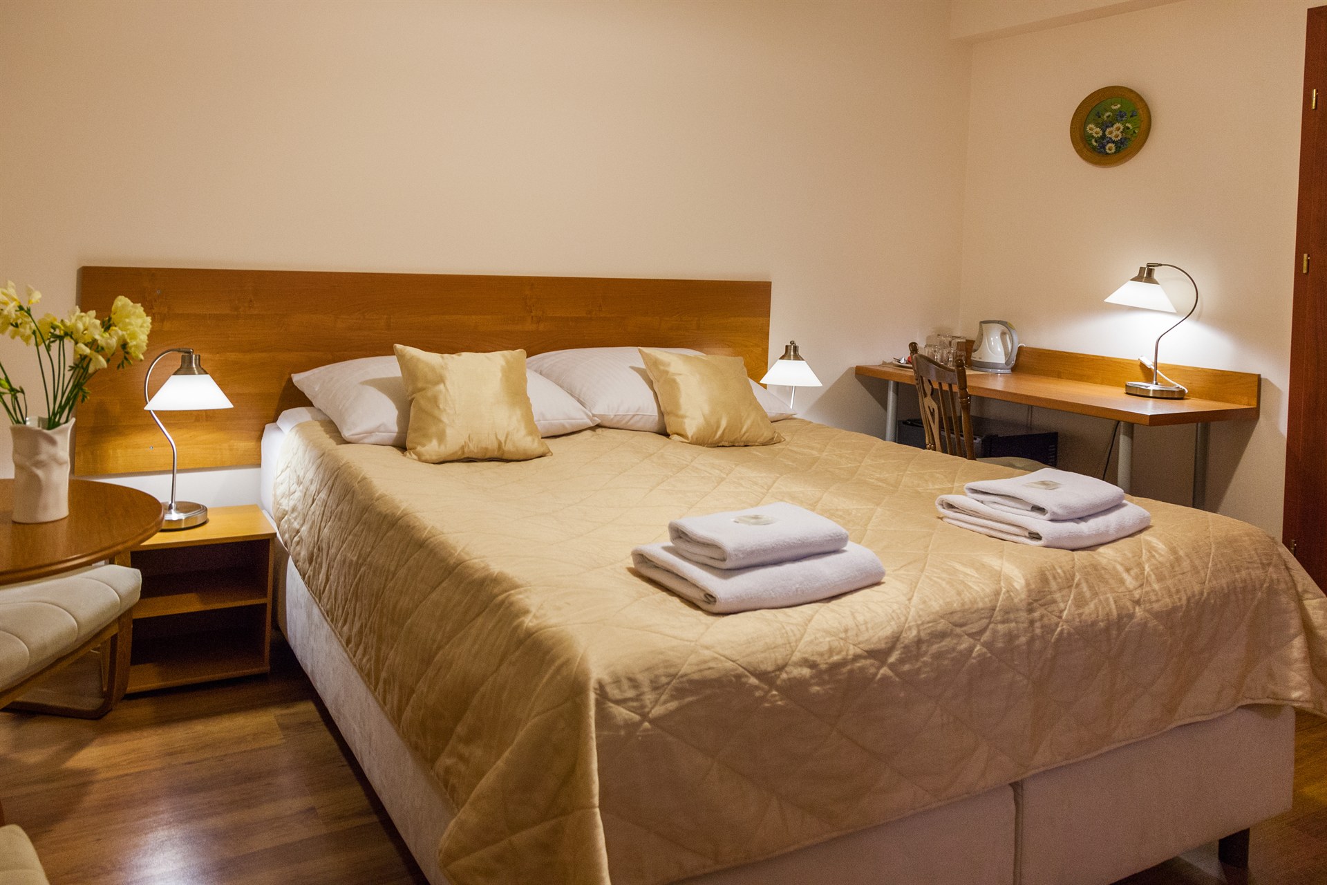 Pokój dwuosobowy oferuje konfigurację z jednym łóżkiem podwójnym lub dwoma pojedynczymi. W pokoju znajduje się balkon, prywatna łazienka, biurko, lodówka, czajnik, telewizor z płaskim ekranem oraz bezpłatne Wi-Fi. Przemyślane wyposażenie umożliwia komfortowy pobyt.